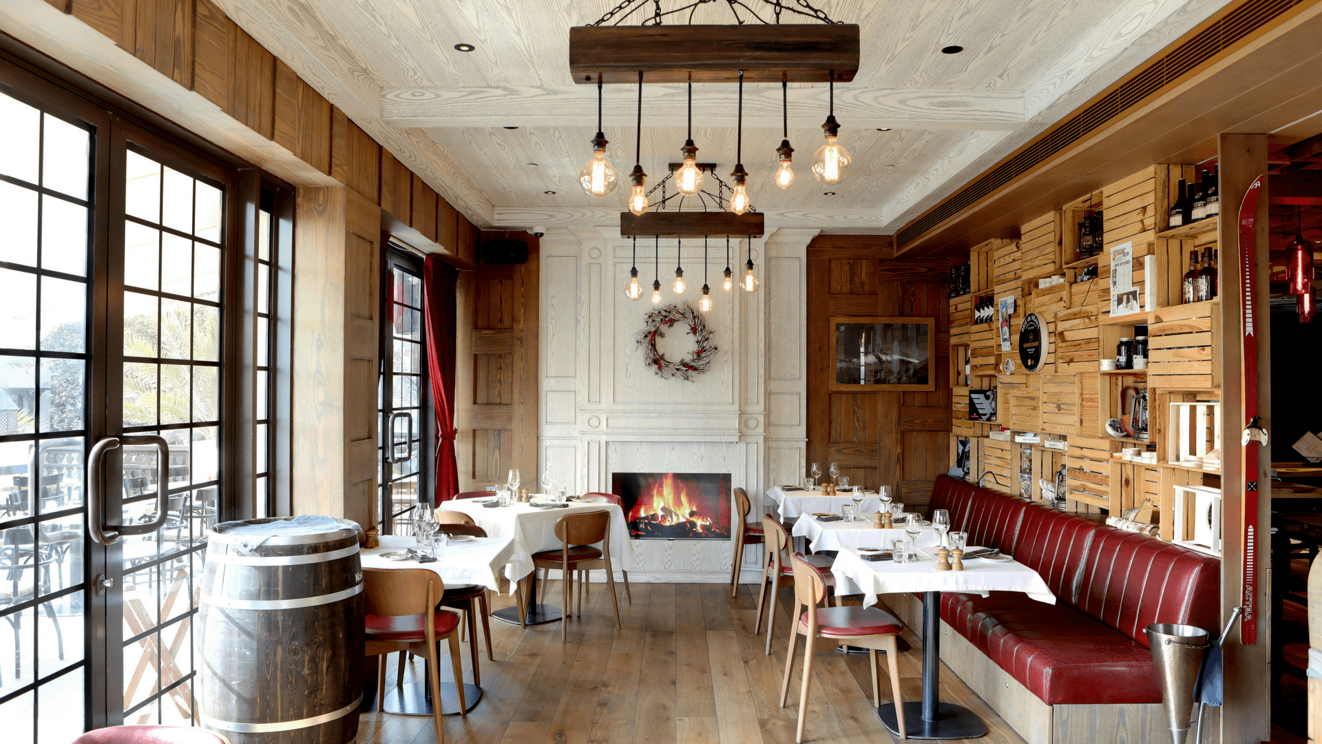 Publique fuses a vibrant bar and restaurant together for guests to explore an authentic and unprecedented alpine experience in the heart of Dubai. Every detail of the interior evokes the warm and rustic splendour of a mountain lodge, from traditional wooden bar, eye catching Gondola DJ booth to chalet style terrace, the ultimate sun trap providing pristine views onto the Arabian Gulf.